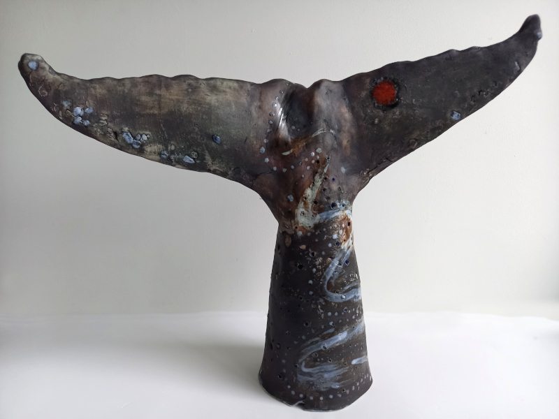 Afmeting: H 32, B 38, D 12 cmDe walvis is als een vriend die de weg wijst naar de waarheid. De waarheid is eenvoudig en bevindt zich onder de golven van gedachten. In elke situatie kun je net als de walvis onder het oppervlak en de golven duiken en de diepe stilte die eronder ligt ervaren. Dan ben je de stilheid zelf. Een stilheid waar de taal ongesproken blijft en toch stellig wordt verstaan.